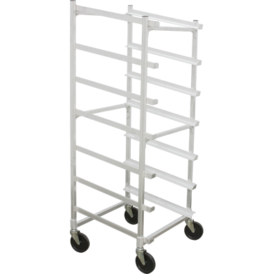 (64483) Dough Ball Storage Cart, holds (7) lift out trays at a slant, each tray holds (9) 2 qt. tubs/63 total, aluminum frame, (4) 5″ swivel wheels (2 locking), (ABS trays & tubs not included)), Made in USA