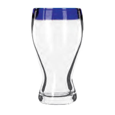 Beer Glass, 16 oz., with cobalt blue rim, anneal treated, dishwasher and microwave safe, hand blown, glass, Aruba (H 6-1/4″; T 3″; B 2-5/8″; D 3-3/8″)Brand: Libbey Glass