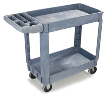 Bin Top Utility Cart, 500 lb. capacity, 40″L x 17-1/4″W x 33-1/2″H, (2) 3-1/2″ deep bin-shelves, molded-in handle, (4) heavy duty 5″ non marking casters (2 swivel/2 rigid), polypropylene, gray, KDBrand: Carlisle