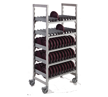 Camshelving® Mobile Dome Drying Rack Cart, 21″W x 36″L x 75″H, includes: (10) dome drying racks for (5) levels, (10) mobile traverses, (2) pre-assembled post sets, (4) premium swivel casters with total locking brake, speckled gray, NSF