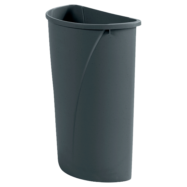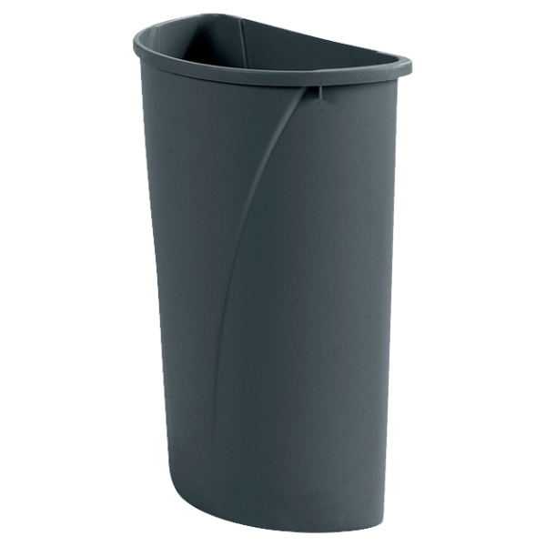 Centurian™ Waste Container, 21 gallon, half round, integrated liner tabs, ergonomic handles, bottom helper handles, polyethylene, gray