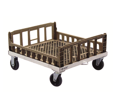 Crisping Basket Dolly, 29-3/4″W x 26-3/4″D x 8″H, aluminum construction, (4) 5″ platform casters (2 swivel/2rigid), (does not include crisping basket), NSF, Made in USABrand: New Age