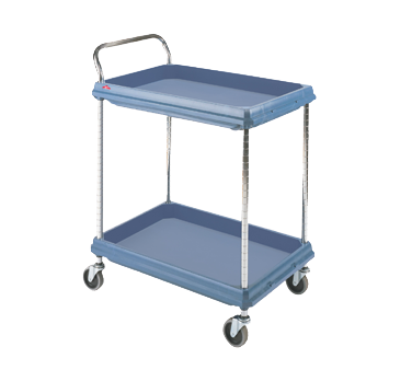 Deep Ledge Utility Cart, 2-tier with open base, 38-3/4″W x 27″D x 41″H, adjustable polymer shelves with 2-3/4″H ledges on all sides, Microban® antimicrobial product protection, 150lbs per shelf capacity (400lbs total capacity), handle on short side, with (4) swivel/resilient tread casters, blue, no-tool assembly, NSF