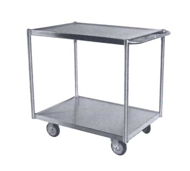 Deluxe Utility Cart, (2) solid shelves, open base, shelf size: 23″ x 34″, 650 lb. capacity, (1) push handle, 1-1/4″ dia. tubing, heli-arc welded stainless steel, polished, 5″ casters (2 swivel, 2 rigid), NSFBrand: Sammons Equipment