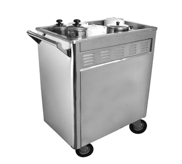 Dim Sum Cart, with waterbath steamtank heated bv alcohol/canned heat (fuel containers not included), removable panels, stainless steel push rail, casters with rubber tires, 3/4″ drain valve, stainless steel construction