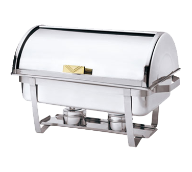 Economy Chafer, 9 qt., 24-1/4″ x 14-1/2″ x 15-1/2″, rectangular, 90° roll top lid with gold tone handle, full size x 2-1/2″ deep food pan, stackable frame, 18/8 stainless steel, mirror finishBrand: Browne USA Foodservice