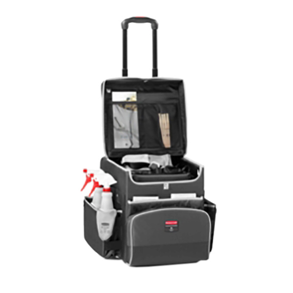Executive Quick Cart, 22″L x 15″W x 17″H, small, with Teflon® fabric protector repels water, oil and stains, heavy duty kick plate, heavy duty straps and large front pockets, adjustable dividers, removable inner liner, aluminum telescoping handle, (2) ball-bearing wheels, dark gray