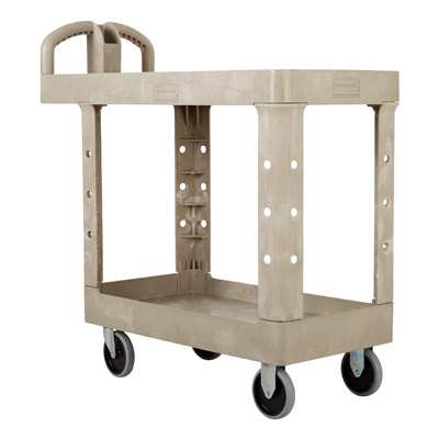 Flat Shelf Utility Cart, 37-7/8″L x 19-3/16″W x 33-5/16″H, 500 lb. total capacity per shelf, (2) shelves, open base, polyethylene exterior, 5″ thermoplastic (TPR) casters, assembly required, beige, Made in USA