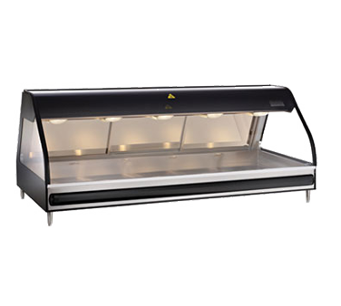 Halo Heat® Heated Display Case with European Style Base, 72″ L, full-service, curved glass front, (10) overhead lights, (5) full & (5) 1/3 size or (3) sheet pan capacity, bronzed glass sliding rear doors, 10″ x 60″ rear work shelf, stainless steel exterior, EcoSmart®, cULus, UL EPH ANSI/NSF 4, CE, IPX3, TUV NORD, EAC