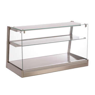 Heated Display Cabinet, squared front edge, two tiers, angled open back, temperature range 150° F to 165° F, NEMA 5-15P, 120v/50/60/1-ph, 1000w, 8.3 amps, cETLus, ETL-Sanitation