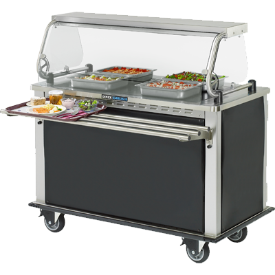 Hold-N-Serv™ MealtimeXpress™ Delivery Cart, 52-2/5″W x 28-3/4″D x 52-3/4″H, (37-13/16″H work height), (2) convection heated compartment each accommodate (8) full size pans, convection heat, breath guard with shelf, push handle, stainless steel construction, full perimeter bumper, (4) 6″ swivel casters (2 braked), ETL-Sanitation, cETLus