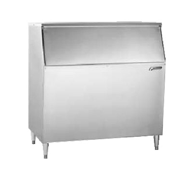 Ice Bin, slope front, 22″ wide, 300 lb. bin storage, poly-lined interior, stainless steel top, insulated stainless steel lift door with replaceable gaskets, heavy-duty welded steel shell & frame support, stainless steel front & sides, 6″ plastic legs, includes custom cut top for specific ice machine(s), for use with Maestro™ 425 (air-cooled) & Horizon™ 700 series ice machines, NSF