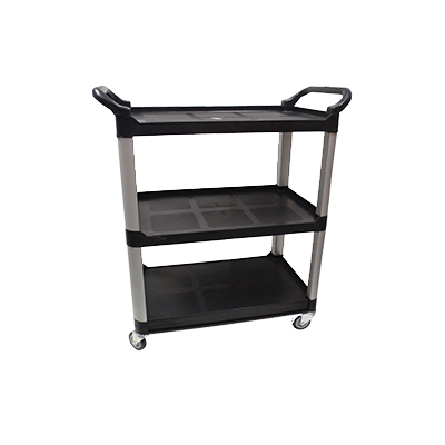 Johnson-Rose™ – Bus Cart, 40″ x 20″ x 38″, open design, 3 shelves, HD plastic, aluminum uprights, with handles, 200 lb. capacity, 4″ non-marking casters, black, KD