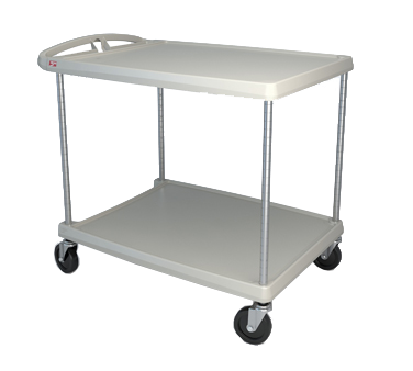 myCart™ Series Utility Cart, (2) shelves, open base, 40-1/4″D x 27-11/16″W x 36-7/8″H, heavy duty plastic shelf, with (4) swivel/resilient tread casters, 2-shelf cart has a 300 lb. capacity per unit, gray, NSF