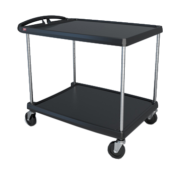 myCart™ Series Utility Cart, (2) shelves, open base, 40-1/4″D x 27-11/16″W x 36-7/8″H, heavy duty plastic shelf, with (4) swivel/resilient tread casters, 2-shelf cart has a 300 lb. capacity per unit, black, NSFBrand: Metro