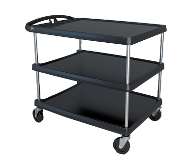 myCart™ Series Utility Cart, (3) shelves, open base, 40-1/4″D x 27-11/16″W x 36-7/8″H, heavy duty plastic shelf, with (4) swivel/resilient tread casters, 3-shelf cart has a 500 lb. capacity per unit, black, NSF