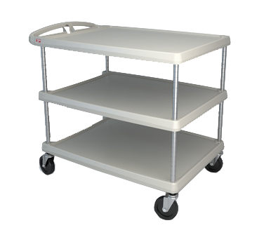 myCart™ Series Utility Cart, (3) shelves, open base, 40-1/4″D x 27-11/16″W x 36-7/8″H, heavy duty plastic shelf, with (4) swivel/resilient tread casters, 3-shelf cart has a 500 lb. capacity per unit, gray, NSF