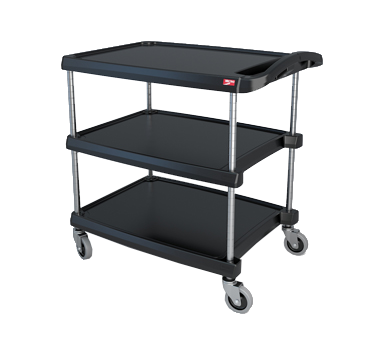 myCart™ Series Utility Cart, (3) shelves, open base, 34-3/8″W x 23-7/16″D x 35-1/2″H, heavy duty plastic shelf, with (4) swivel/resilient tread casters, 3-shelf cart has a 400 lb. capacity per unit, black, NSFBrand: Metro