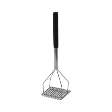Potato Masher, 4-1/2″ x 17-3/4″L, square, chrome plated handle with black textured polypropylene handle sleeve, nickel plated masher (Qty Break = 6 each)Brand: Winco
