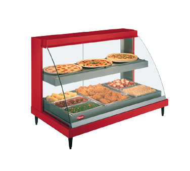 (QUICK SHIP MODEL) Glo-Ray® Designer Heated Display Case, tempered curved glass, countertop design, (3) pan Designer dual shelves, incandescent lighting, stainless steel interior, 4″ adjustable counter legs, 1710 watts, 120v/60/1, cUL, UL, UL EPH Classified, ANSI/NSF 4