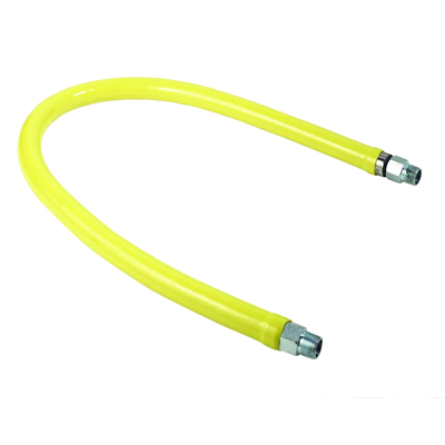 Safe-T-Link Gas Connector Hose, 1-1/4″ connection, 24″L, stainless steel braid with extruded coating, 1-1/4″ male x 1-1/4″ male, (2) 90° elbowsBrand: T&S Brass