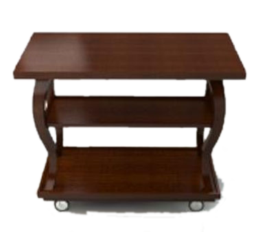 Serving Cart, 36″W X 18″D x 34-3/4″H, rectangular shaped top, (2) shelves, cabriole style legs, wood veneer overlay, 4″ non-marking swivel casters with chrome wheel (2 with brakes), Made in USA (by Lakeside)Brand: Geneva