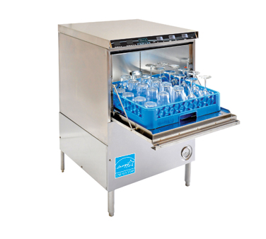 Underbar Glasswasher, door type, 24″W, high-temperature sanitizing, built-in 5.3 kW booster heater, (30) 20″ x 20″ racks per hour, 11-1/4″ maximum glass height, top-mounted controls, digital LED temperature gauges, rotating upper & lower rinse arms, removable front & side panels, stainless steel construction, 6″ adjustable legs, 1 HP pump, 208v/60Hz/1-ph, 33.0 amps, cULus, NSF, ENERGY STAR®