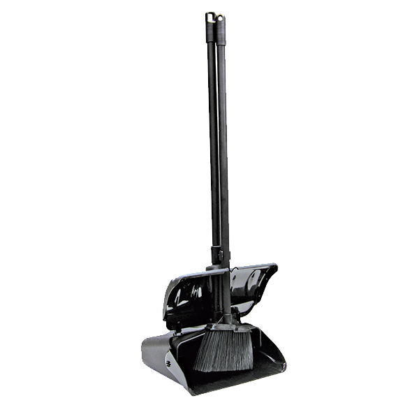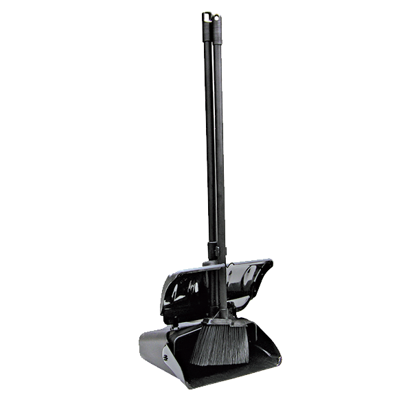 Update International™ – Lobby Dust Pan & Broom Set, pan size: 13″L x 11″W x 4-1/2″H with handle 33″H, broom: 7-3/4″L x 1-1/4″W x 38″H, self opening & closing hopper, broom clip on dust pan handle, angled nylon broom with nylon bristles, hangs flat, black
