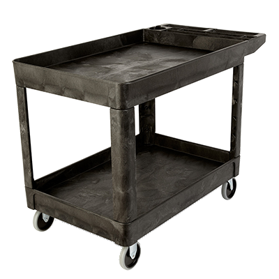 Utility Cart, 45-1/4″L x 25-7/8″W x 33-1/4″H, 500 lb. capacity, (2) lipped shelves, open base, heavy duty, 5″ thermoplastic rubber casters (TPR), structural foam, black, Made in USABrand: Rubbermaid Commercial Products