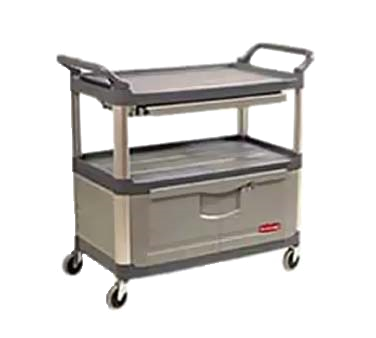 Xtra™ Instrument Cart, 40-5/8″L x 20″W x 37-13/16″H, 300 lb. total capacity, (2) shelves, 100 lb. capacity per shelf, (1) compartment with lockable doors and sliding drawers, (4) large non-marking casters, assembly required, gray, Made in USA